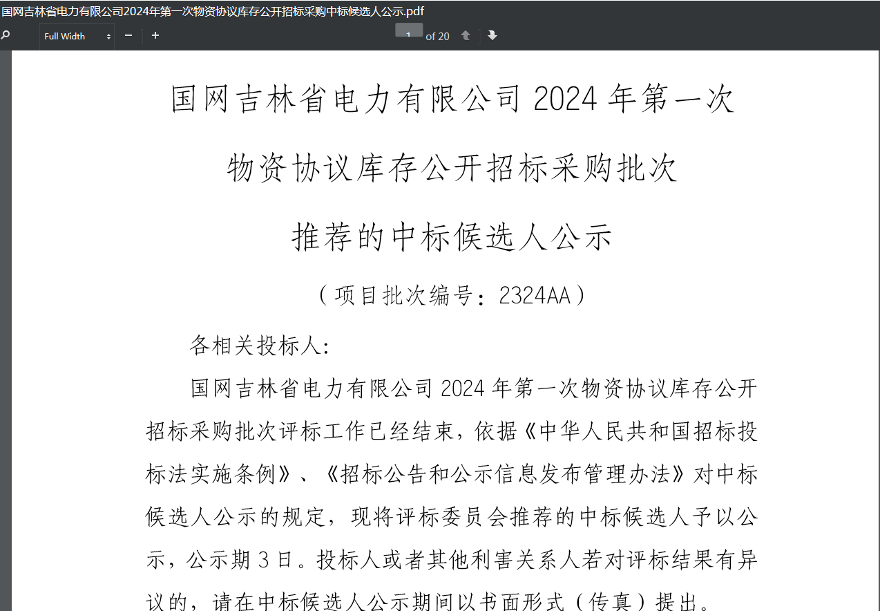 恭喜我公司中標(biāo)國網(wǎng)吉林省電力有限公司2024年第Yi次物資協(xié)議庫存公開招標(biāo)采購項(xiàng)目